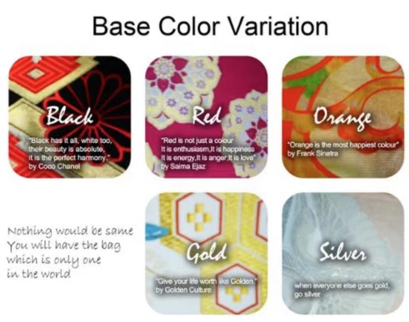 選択いただくのは帯のベースのカラーとなりますので、柄の色やデザインによって異なる印象を楽しめます。