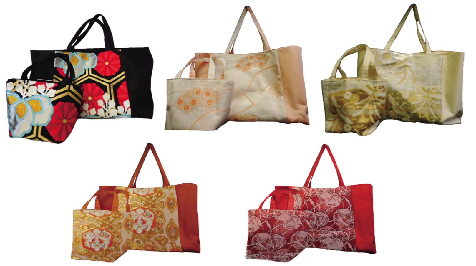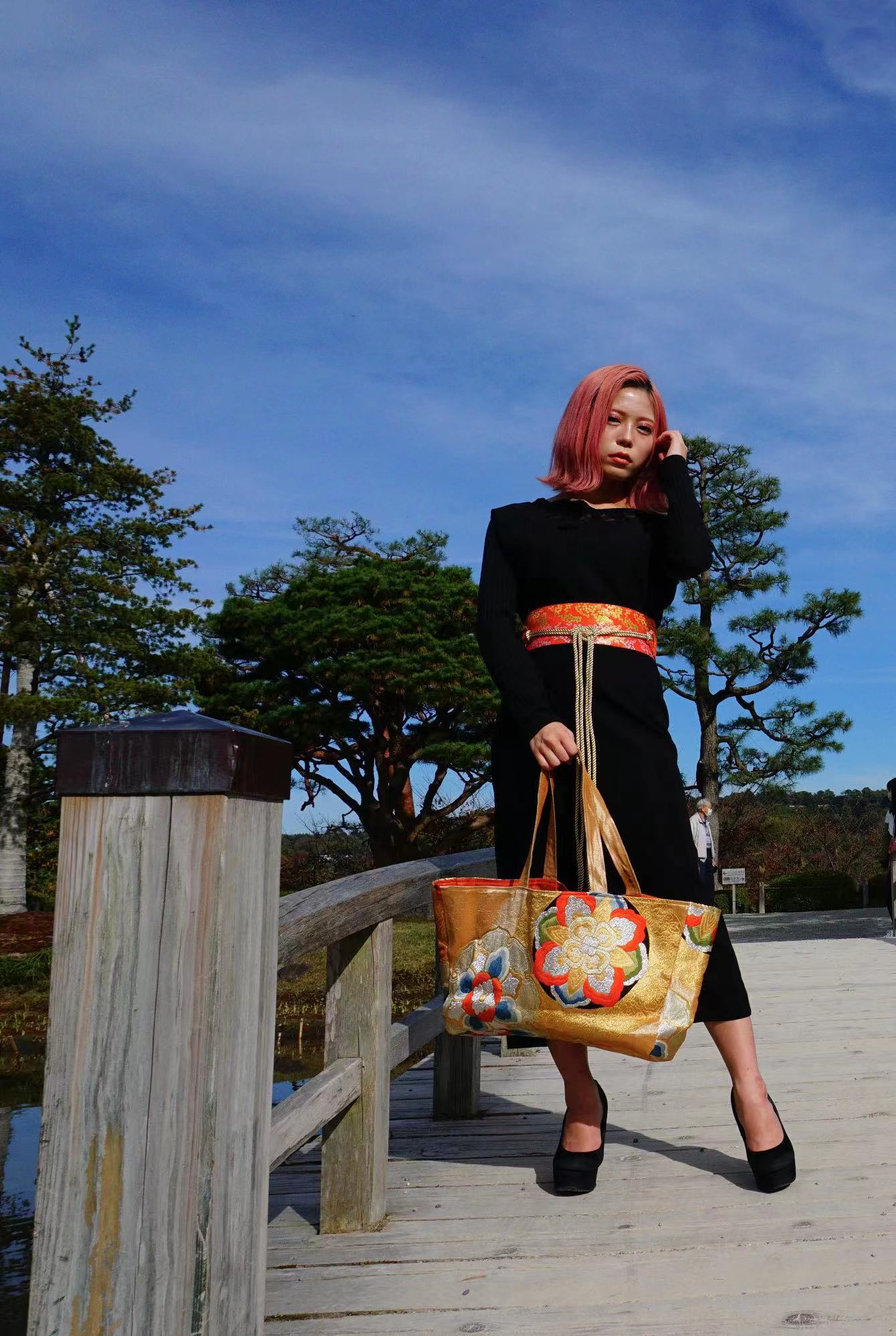 着物の帯を使用したアップサイクル品です。
